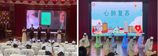颁奖结束后,学生们进行了文艺、技能展示。首先是诗歌朗诵《生命之光》,诗篇如画,诵读如歌,让在场师生一起感受语言文字的魅力。接下来学生们展示了护理礼仪和心肺复苏技能展示,作为一名合格的护士,不仅要有丰富的理论知识及娴熟的专业技能,更需要有良好的道德品质以及优雅的护士形象。护理2105班手语舞《你的答案》作为压轴节目闪亮登场,表演者们用双手演绎出了疫情期间最美逆行者的无惧无畏,传递出医护从业者的无私大爱。
