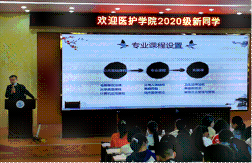 本网讯(通讯员 吴荣) “良好的开端是成功的一半”,为了帮助大一新生开创一个良好的开端,让他们尽快适应大学生活,同时为了增进师生间的互相了解,新学期伊始,医护学院举行“2020级高职新生专业思想教育”主题活动。医护学院院长冯旗、医护学院党支部书记王冰、主题教育宣讲的三位老师以及各新生班辅导员出席了会议。