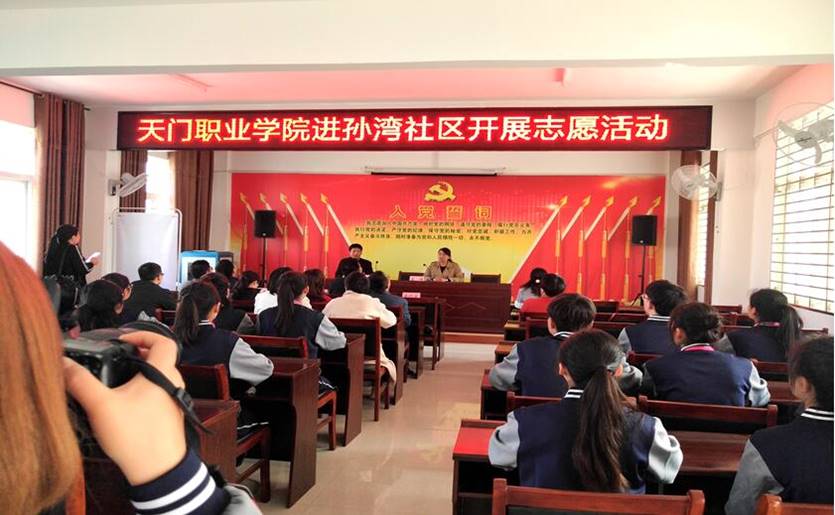 本网讯(通讯员 吴荣 李鹏云)为引导社区居民关注健康,了解自身的身体状况,科普健康医疗知识,发扬助人为乐的传统美德,树立奉献、有爱、互助、进步的时代新风。4月12日下午,在学校组织宣传部副部长王志同志和医护学院党支部副书记曾娟同志的带领下,医护学院全体党员教师及团委学生会成员来到天门市竞陵孙湾社区开展进社区活动。