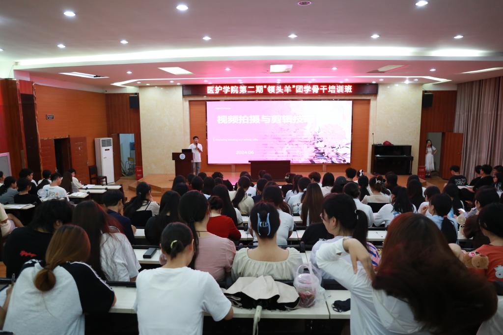 为进一步加强学院宣传队伍建设,提高团学骨干摄影摄像及视频剪辑水平,6月13日,医护学院在B栋报告厅开展摄影剪辑专题培训,22级陶佳浩同学担任主讲人,全体团学骨干参加。