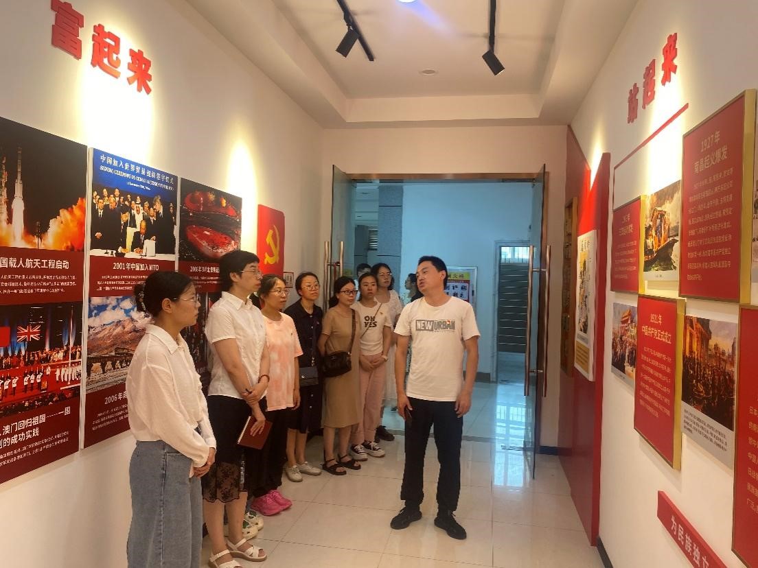 此次系列活动以参观思政课智慧实践研修基地、重温入党誓词、聆听党课、座谈交流会等形式展开。在我校马克思主义学院思政课智慧实践研修基地,全体党员在马克思主义学院院长孙争元的带领下,参观基地建设,认真聆听党的发展、奋斗历程和伟大建党精神,借助VR设备,身临其境感受热情澎湃的革命年代,无数革命先烈为党为人民前赴后继不畏牺牲的铁血精神。