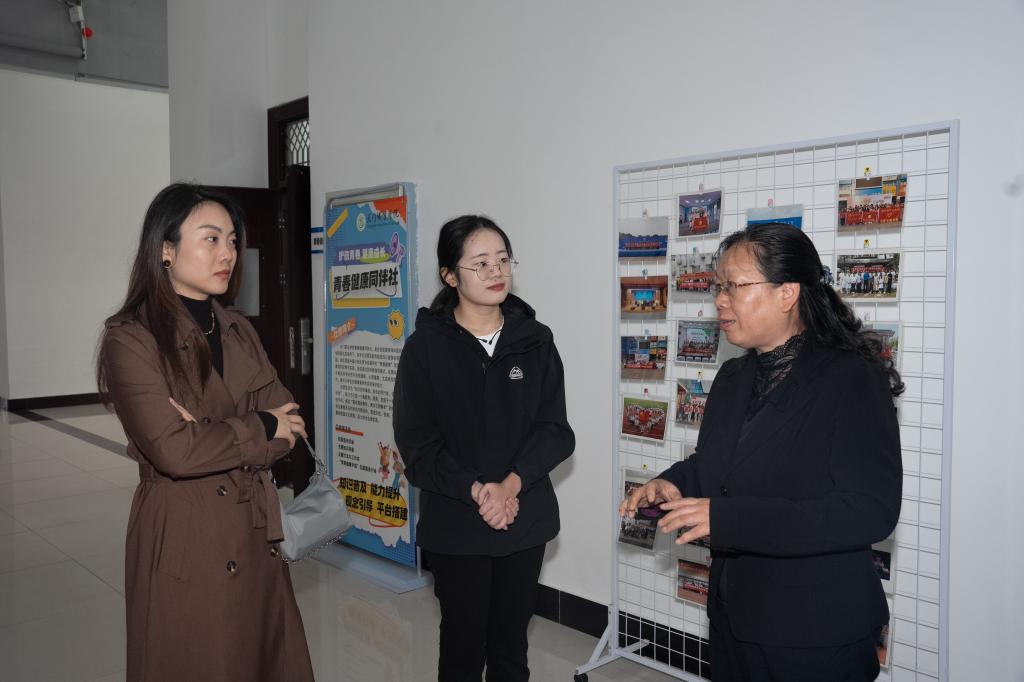 调研组先来到我校医护学院青春健康教育基地,实地考察了基地的整体布局与功能设置。许佳妮详细介绍了我校在场地设施、团队建设及社会服务等方面所做的准备工作。基地内设有团辅室、活动室、接待室、健康宣教长廊,营造了浓厚的青春健康教育氛围。这些精心规划的设施,为我校系统化、常态化开展青春健康教育活动提供了坚实的阵地保障,旨在为广大学生打造一个集教育、培训、活动于一体的综合性服务平台。