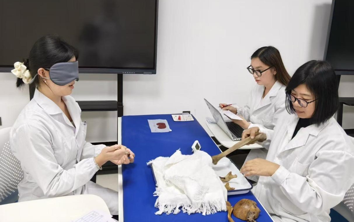 比赛现场气氛热烈而紧张,各赛项同步推进、亮点纷呈。人体骨骼辨识赛分为“见微知骨”“见骨知名”“盲人摸骨”三个环节,层层递进考验选手的专业功底。赛场上,选手们的每一个专注的神情、每一次果断的判断,都彰显着平日里的扎实积累。赛场内济济一堂,无论是小巧的腕骨还是粗壮的肱骨,都难不倒这些“医学新秀”。