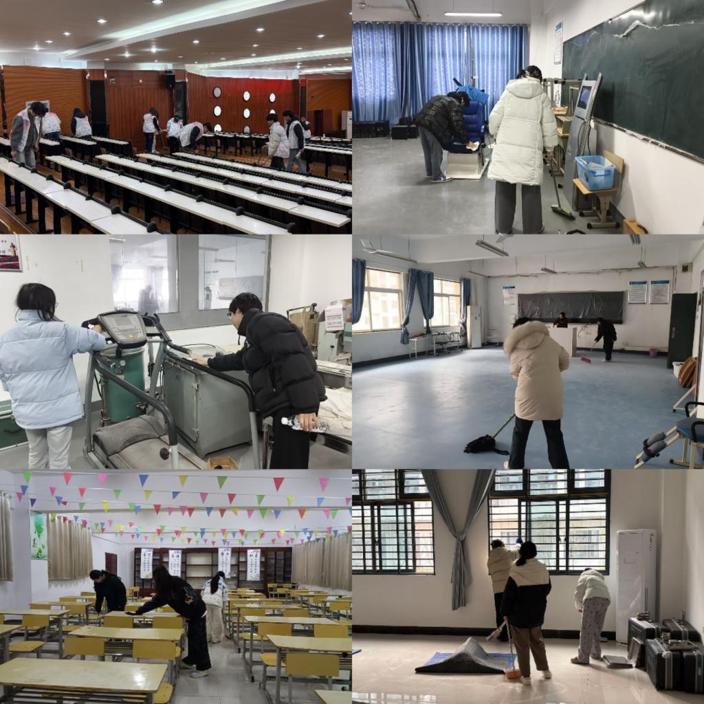活动将劳动教育与志愿服务深度融合,打破了传统课堂的局限。在教学楼的清洁过程中,同学们分工明确,配合默契,从擦拭黑板、清理讲台,到清扫走廊死角、规整课桌椅,每一个细节都一丝不苟。实训楼的清洁过程中,同学们不仅对实训床铺进行了整理,还对各类实训模型、操作台面及实验仪器进行了擦拭。通过对实训环境的精心维护,学生们深刻认识到医疗环境中“洁净”与“安全”的生命重量,为未来走向临床岗位奠定了坚实的职业道德基础。