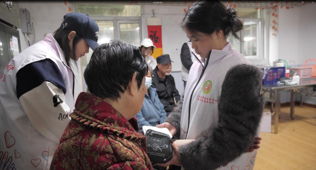 活动现场,师生志愿者带着医疗器材和慰问物资,为老人们提供贴心服务。大家有序开展血压测量、健康咨询,耐心讲解春季常见病预防、慢性病日常管理等知识,用专业与温暖为老人们送上健康关怀。志愿者们细致周到、态度亲切,让老人们真切感受到关怀与温暖,现场气氛温馨融洽。
