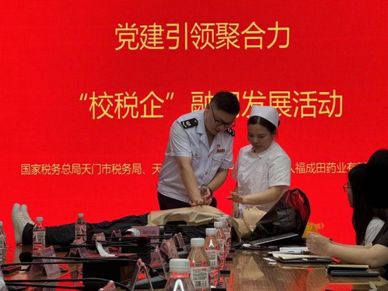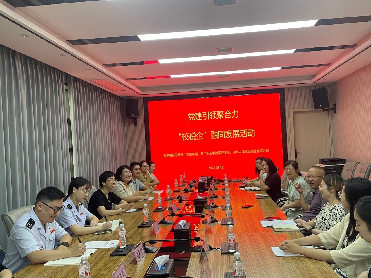 秋风送爽,硕果飘香, 9月12日上午,医护学院党支部联合国家税务总局天门市税务局共同走访了湖北人福成田医药有限公司,问需献策,开展党建引领聚合力,校企税融同发展活动。