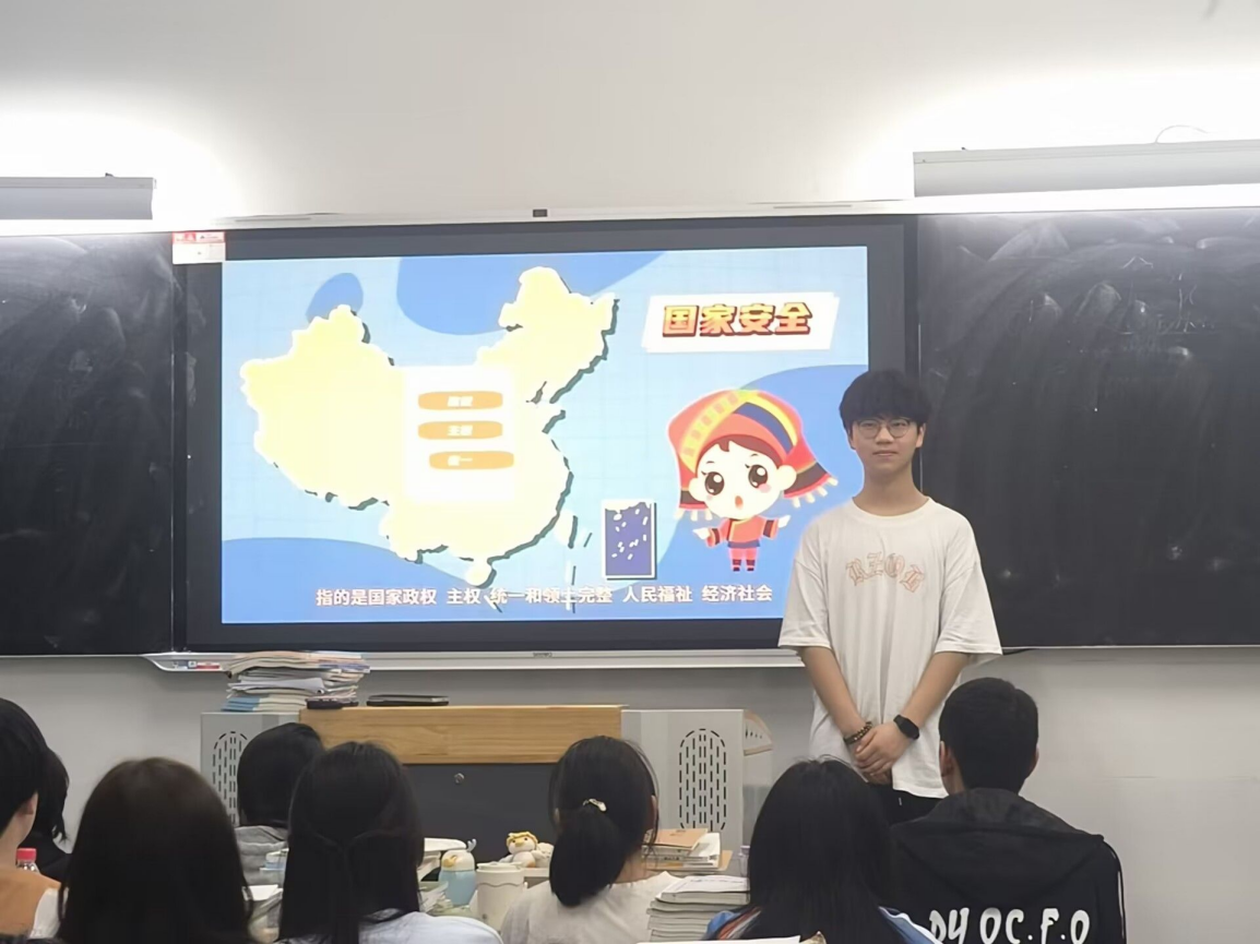 全校师生集中观看了国家安全教育视频,学习了习近平总书记2023年1月31日在二十届中央政治局第二次集体学习时的讲话和2023年8月22日在2023年金砖国家工商论坛闭幕式上的致辞。学完材料,同学们结合自身学习和生活实际,踊跃分享了自己对国家安全的看法和理解。