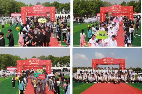 最后,在领导、老师、家长们充满期望的注视下,学生们身穿具有专业特色的服装、伴随着《我的未来不是梦》的音乐,踏上红毯,迈过“成人门”,翻开人生新的篇章,踏上人生新的征程。