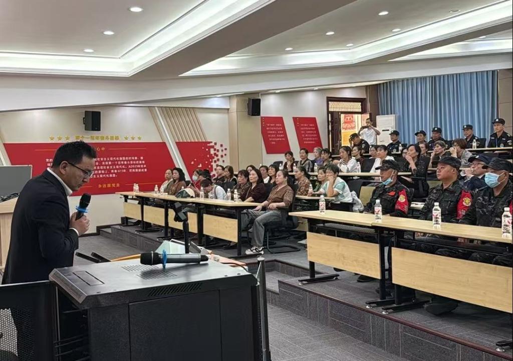 培训首阶段于学校马院报告厅开展理论教学,聘请的专业讲师结合校园安全实际,带来保安职业素养专题讲座。讲师聚焦校园关键场景,围绕上、下学高峰期校门疏导,周边秩序维护等核心环节,细致拆解家长车辆规范停放引导、学生人流高效疏导、接送家长身份核验等实操要点。同时,深刻解读保安职业道德内涵,明确遵纪守法、诚实守信、爱岗敬业、乐于奉献的行为准则,并强调需严格保守客户信息、学校机密及突发事件细节等保密要求。针对校园应急需求,讲师还系统讲解学生突发疾病、意外受伤、校园安全事故等场景的应急处置流程,以及学生特殊求助时的协助规范。此外,对护学岗 “定位置、定人员、定着装、定装备、定站姿、定内容”的“六定” 操作标准,进行全面剖析,确保理论知识贴合岗位实际。