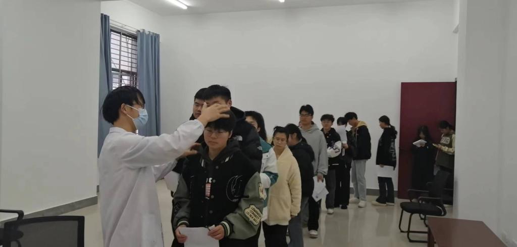 为了高效有序地展开体检工作,职教中心成立了由校长杨恒波为组长的高考体检工作领导小组,后勤科和医务室作为保障力量,全力支援体检工作的顺利进行。教务科和三年级年级组负责体检的具体组织和实施,体检地点分别设在体育馆(普通体检)、行政楼(耳鼻喉科)、教室(血检)和体检车(胸部透视)。