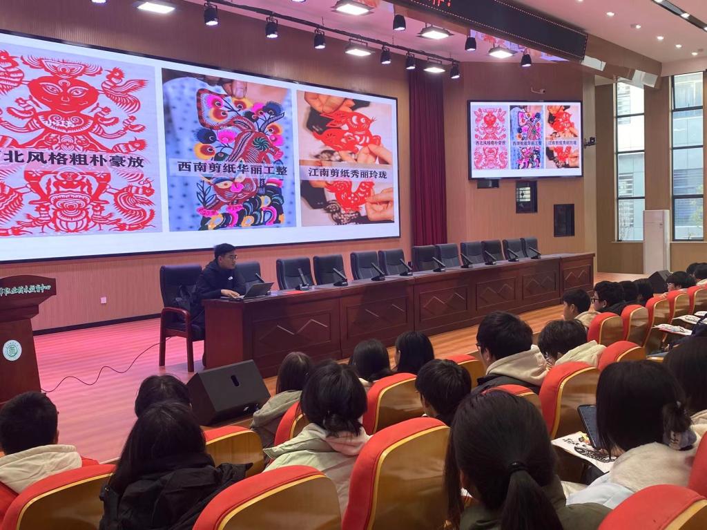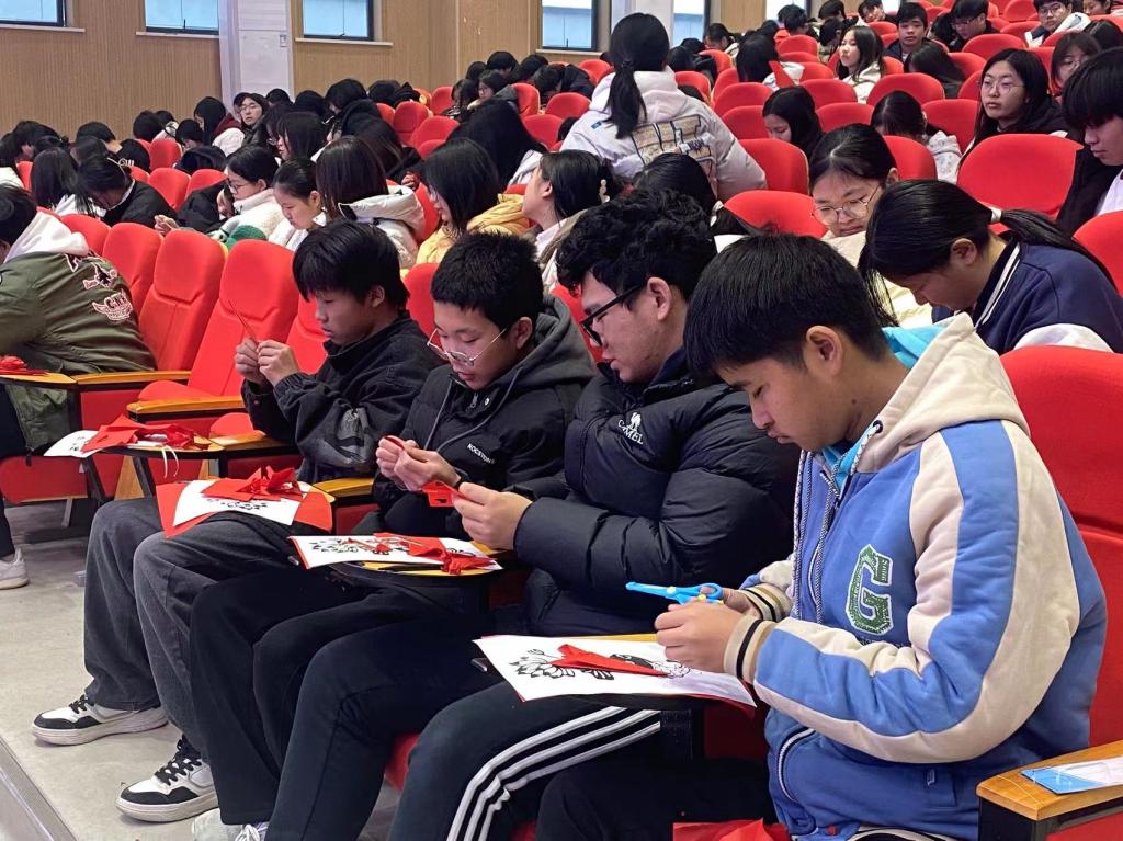 本次剪纸活动分为两个阶段,第一阶段为剪纸培训课程,职教中心团委邀请陆羽国际茶文化艺术学院涂梓欣老师为260余名对剪纸艺术有着浓厚兴趣的学生授课。在剪纸课程上,涂老师向学生们展示了剪纸艺术的独特魅力与深厚内涵。从基础的纸张折叠、裁剪手法,到复杂图案的勾勒设计,涂老师皆进行了细致入微的讲解与示范,学生们被这一古老艺术深深吸引。