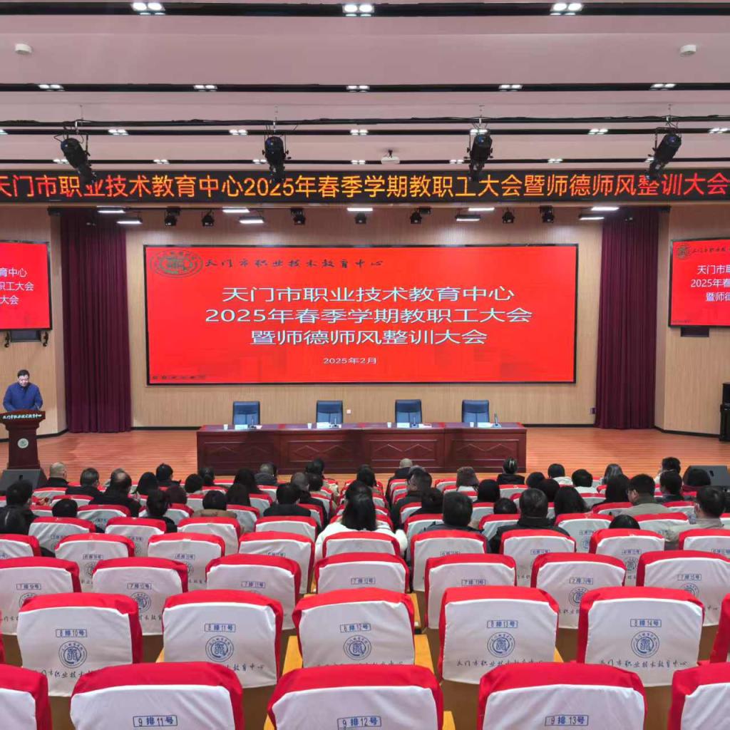 凝心聚力启新程 师德为魂育匠心。2月10日上午,天门市职业技术教育中心在报告厅隆重召开春季学期教职工大会暨师德师风整训大会。全体教职工齐聚一堂,以饱满的热情共谋新学期发展蓝图,以庄严的承诺筑牢师德师风根基。会议由职教中心副校长李威威主持,校领导班子成员出席会议。