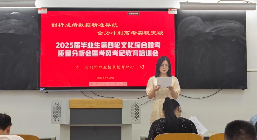 5月20日,天门市职业技术教育中心组织召开了2025届毕业生第四轮文化综合联考质量分析会暨考风考纪培训会,为后期复习备考做指导,为学生冲刺高考保驾护航。