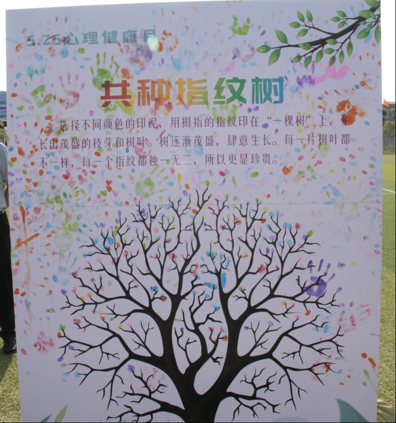 活动现场,“共种指纹树”“我的情绪瓶”“圈住快乐”等创意打卡点人气爆棚,“共种指纹树”活动中,同学们用不同颜色的印泥在“树上”留下独一无二的指纹,寓意着每个个体都是独特而珍贵的存在;“每天夸夸我自己”展板前,暖心的自我肯定话语不断累加,汇聚成温暖的能量场。
