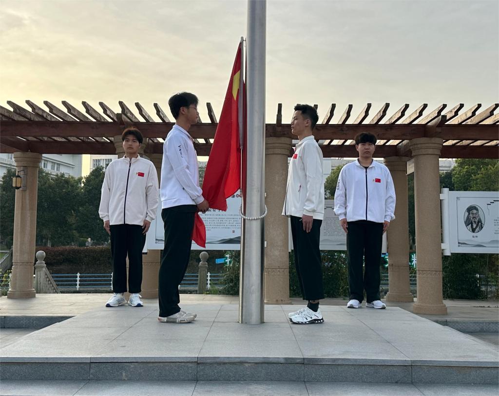 伴随着旭日升起,升旗仪式正式开始。激昂雄壮的国歌声中,五星红旗冉冉升起。师生们向国旗行注目礼,内心慷慨激昂,思想上经历了一次深刻的爱国主义教育。