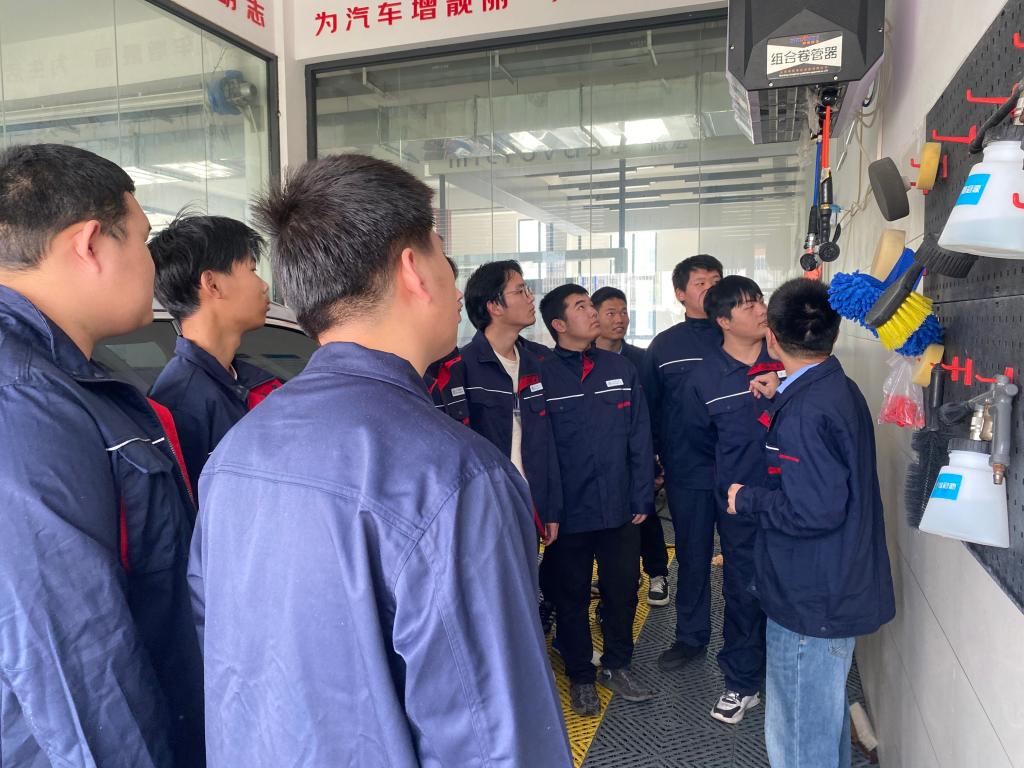培训中,陈灼对勤工俭学助学岗位的工作性质、选拔过程、工作地点、基本要求等进行了详细说明,结合不同工作特点,进行指导和建议,例如如何快速找到汽车的空调格,如何提高效率,工作中注意礼貌等等,加强了同学们对岗位的认识。随后,陈灼向学生讲解汽车的基本原理和构造,展示了洗车的步骤,换机油、换轮胎的流程等,学生们依次进行实操体验,收获满满。
