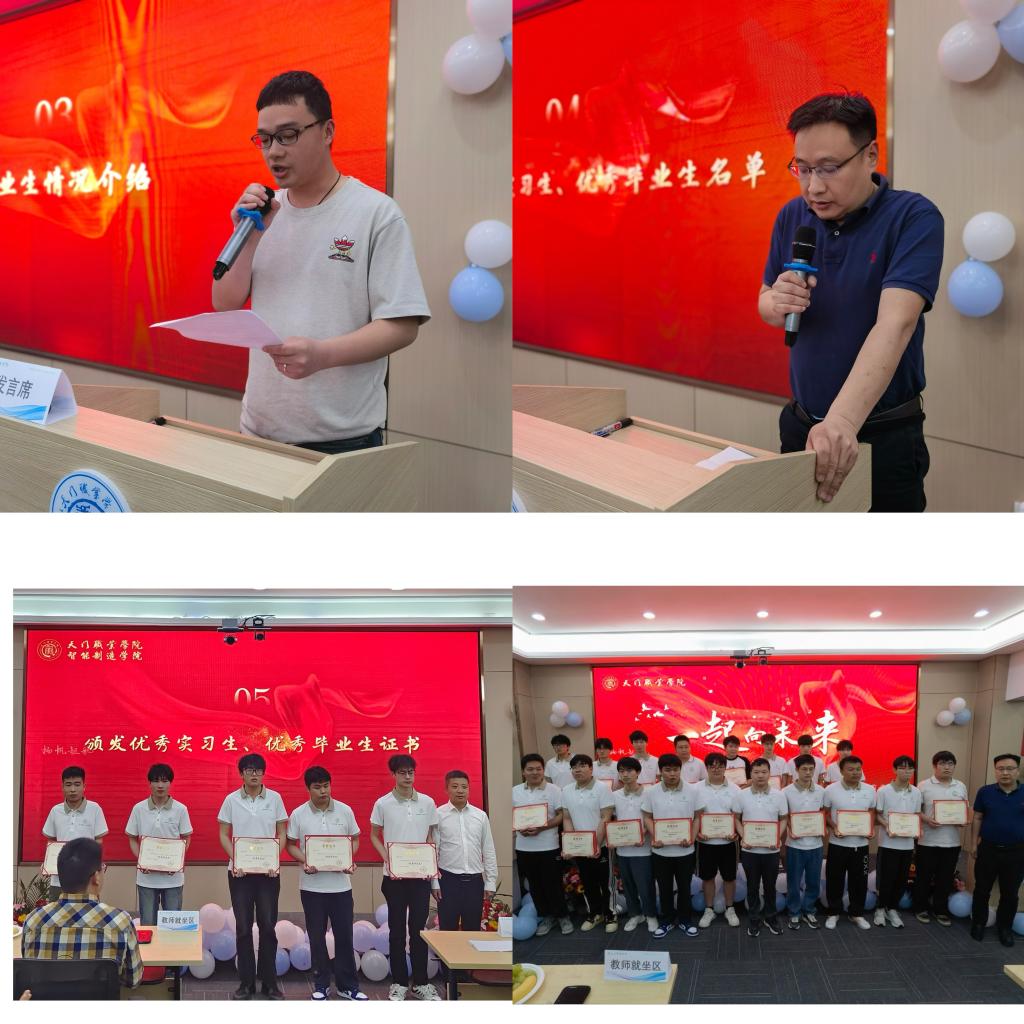 接着,邵诗靖老师介绍2021级毕业生情况,副院长何汉斌宣读优秀实习生、优秀毕业生名单,院长陈鹏为优秀实习生颁发证书,副院长何汉斌为优秀毕业生颁发证书。