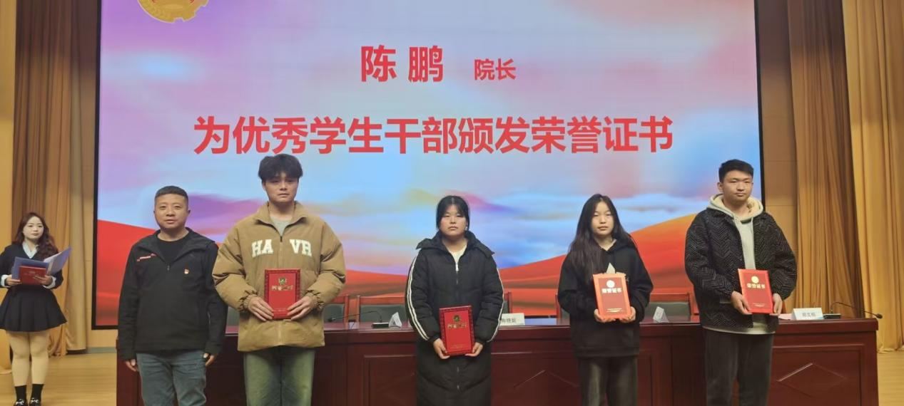 为了充分发扬学生的主体作用,凝聚我院学生骨干的精神力量,促进学生组织的良性发展。2024年12月5日,我院组织召开2024年秋季学期全体学生干部大会。学院党支部书记陶艳妮、院长陈鹏、校团委书记尚驰、副院长何汉斌、党支部副书记倪喆以及全体辅导员、学院学生会、自管会学生干部,23级、24级在校班级全体班干部参加此次活动。