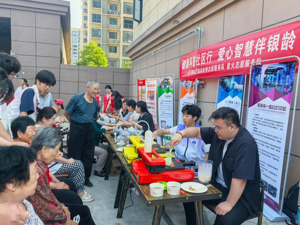 西龙社区幸福食堂前欢声笑语不断,一场以"扶残助老同行,共筑温情社会"为主题的公益活动在此温情启幕。来自天门职业学院智能制造学院的星火志愿服务队以"科技+服务"的创新形式成为焦点,通过3D打印创意饼干、学生科技作品展演等特色项目,为社区老年群体和残障人士带来别样的科技关怀。
