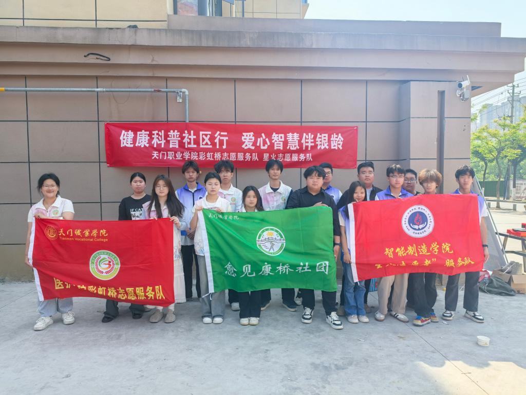 4月29日上午,智能制造学院星火志愿服务队与医护学院彩虹桥志愿服务队积极联动,携手湖北养老智慧平台、西龙幸福食堂、天门肢残协会、家事先锋家政服务中心、天门八段锦协会,一同走进西龙社区,共同开展了一场主题为“扶残助老同行,共筑温情社会”的志愿服务活动,为社区群众尤其是老年群体送去了健康知识与现代科技科普的温暖关怀。