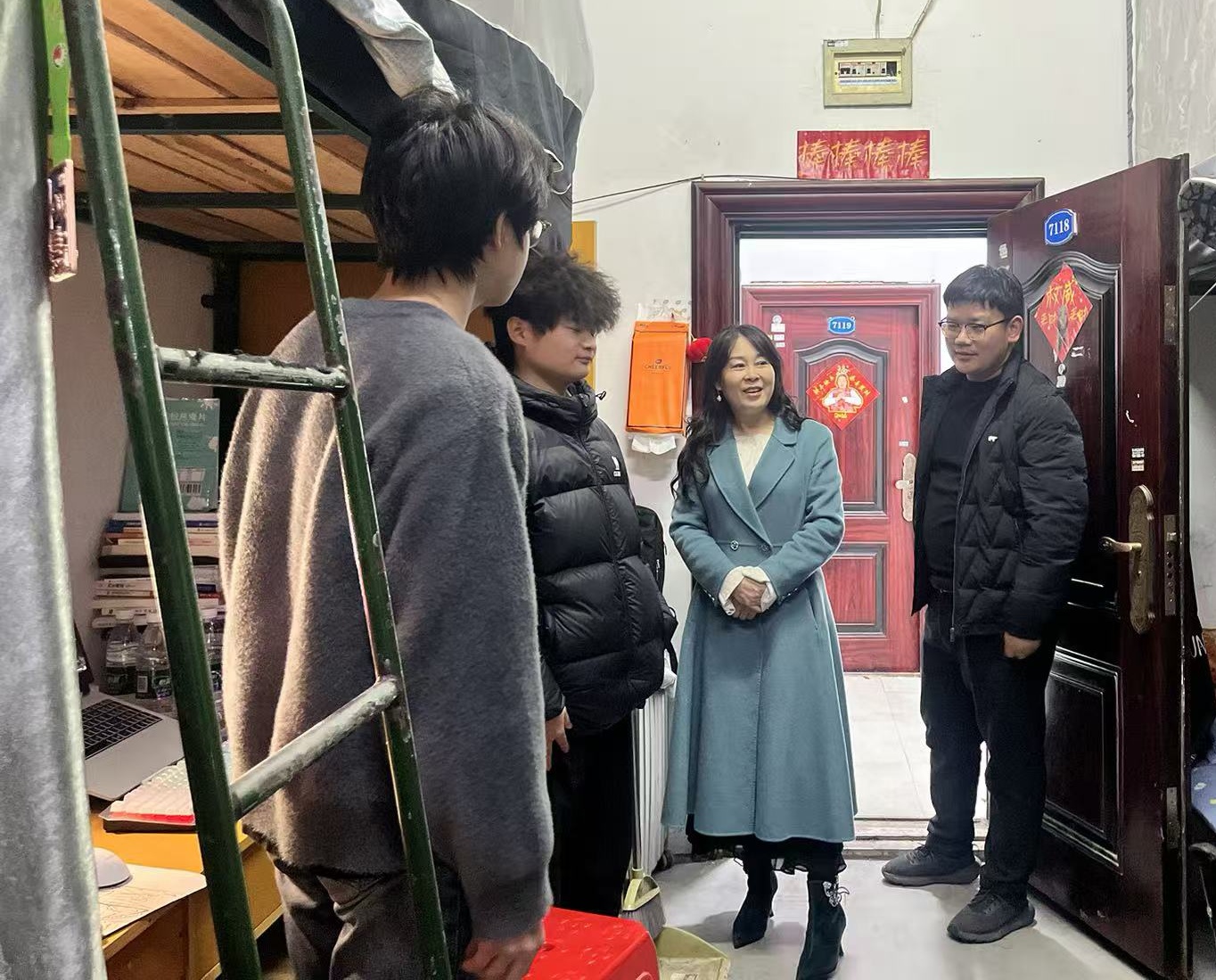 走访过程中,学院领导与返校学生亲切交谈,详细询问大家的假期生活、返校适应情况及新学期的学业规划,鼓励大家做好规划,夯实专业基础,叮嘱同学们要及时调整作息,以饱满的精神状态投入到新学期的学习生活中。此外,重点查看了宿舍的安全卫生情况,提醒同学们注意用电安全、防范电信诈骗,共同营造整洁和谐的宿舍氛围。