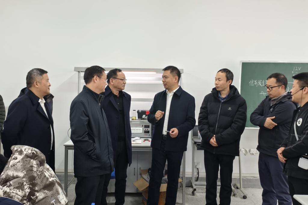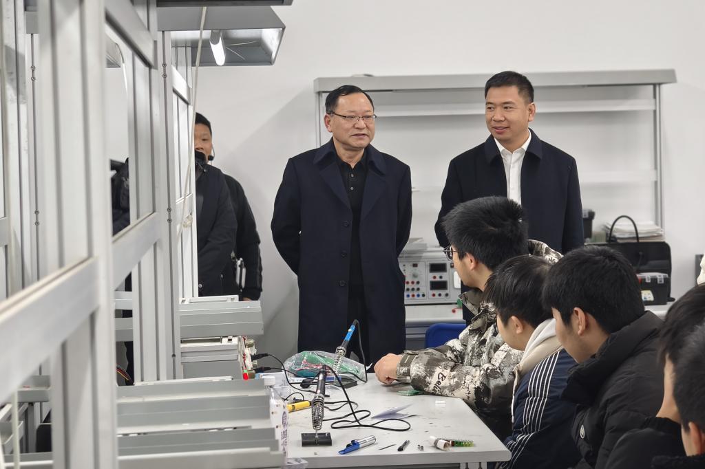刘建波校友一行边走边看,不时驻足交流,对母校在校园建设、专业建设、人才培养等方面取得的成果,给予高度评价。参观过程中,刘建波还与正在实训的学弟学妹亲切交流,勉励他们保持探索热情与学习兴趣,学好专业知识,勤练实操技能。