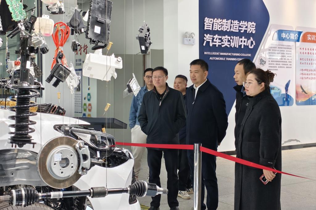 刘建波校友一行先后参观了天门市职业技术教育中心、陆羽国际茶文化艺术学院、电子信息技术学院软件技术实训室、智能制造学院智能制造公共实训基地和汽车实训中心。