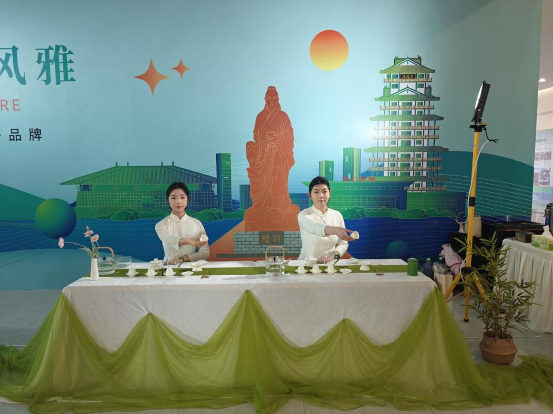 天门西服务区内古筝悠扬、花艺清雅、茶香四溢,茶艺与茶文化专业学子身着茶服,以行云流水的动作演绎《季儿茶韵》十道茶艺程式——从“涤净尘缘”的温杯洁具,到“凤凰行礼”的冲泡技艺,再到“慧心悟茶”的品茗之境,每一步皆展现茶道之雅、礼仪之精。茶席间,一盏清茶以佛子山春茶为引,融竟陵山水之意境,令嘉宾在见证天门迈入“武汉1小时生活圈”的历史时刻,沉浸式感受陆羽故里茶文化的悠长韵味。