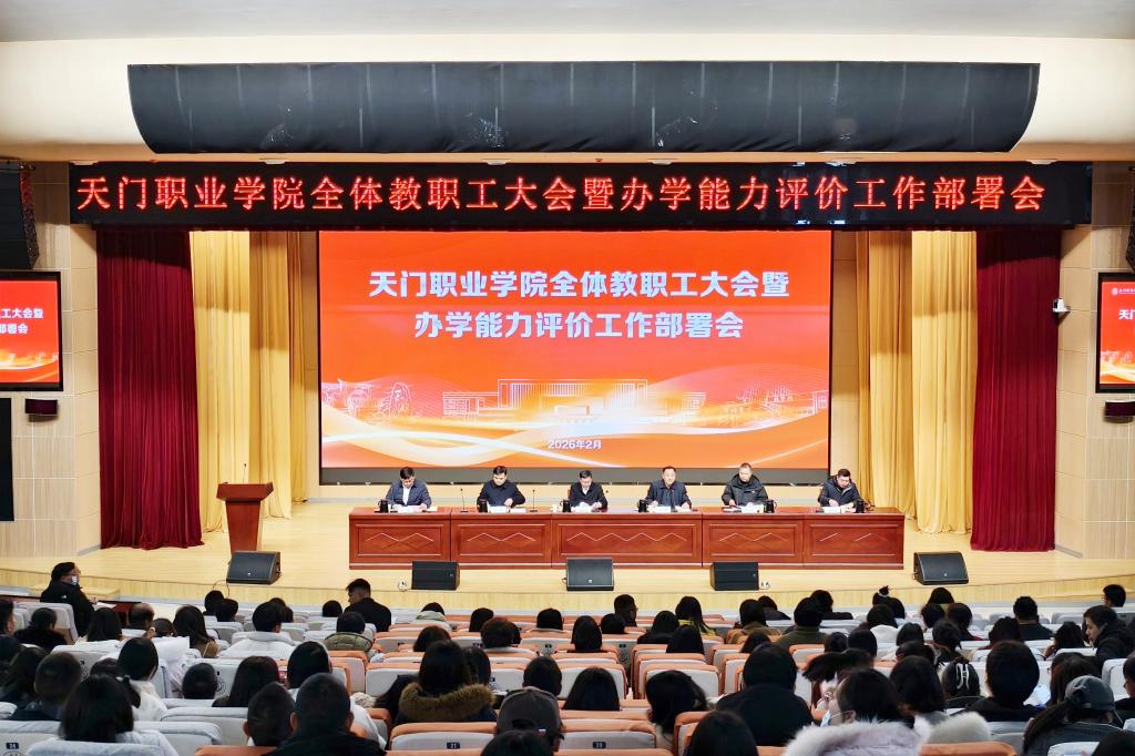 2月2日,天门职业学院全体教职工大会暨办学能力评价工作部署会召开。会议紧扣政策学习、警示教育、重点工作与全面动员四大主题,聚焦年度工作部署与关键任务动员,统一思想,明确方向,为新学期学校高质量发展凝聚共识与力量。全体校领导、教职工参加会议。