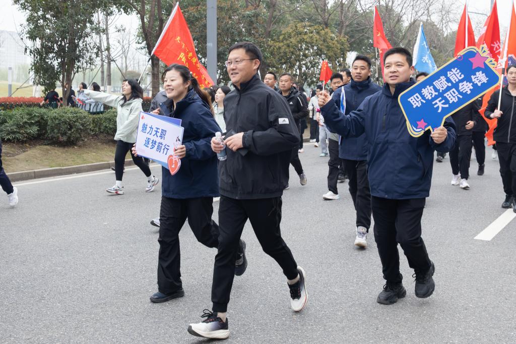 活动现场,天门职业学院参赛教职工身着统一队服,斗志昂扬、步调一致,以坚定的信念和顽强的毅力完成全程赛程,展现了教育工作者坚韧不拔、拼搏进取的优良品质,成为赛事中一道亮丽的风景线 。