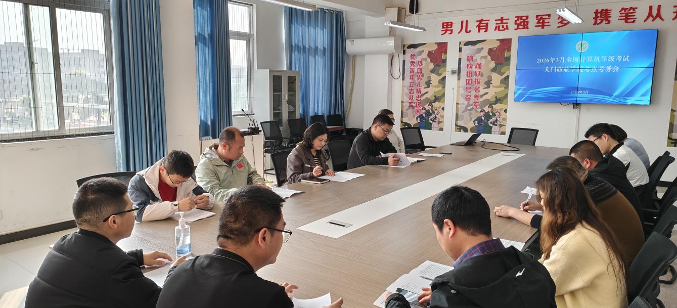 2026年3月28日,2026年3月全国计算机等级考试(NCRE)在我校顺利举行。为保障考试安全平稳有序,学校于3月27日在科技楼二楼会议室召开专项考务部署会,市考试院领导、校党委委员、副校长田刚出席会议并讲话,全体考务工作人员参会。