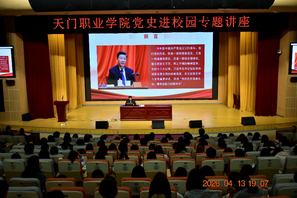 为热烈庆祝中国共产党成立105周年和长征胜利90周年,推动党史学习教育常态化、长效化、走深走实,引导青年学子从百年党史中汲取奋进力量,4月13日晚,我校在图书馆报告厅成功举办党史进校园文化讲座 。本次讲座特邀天门市档案馆党总支书记、馆长万志军主讲,学校党委委员、副书记阳军出席并主持讲座,医护学院25级近400名学生到场聆听。