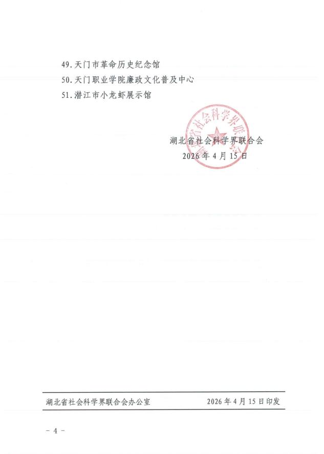 近日,湖北省社会科学界联合会印发相关通知,天门职业学院廉政文化普及中心成功入选省级社科普及基地,标志着我校社科普及、廉洁文化建设工作再添省级荣誉、迈上新台阶。